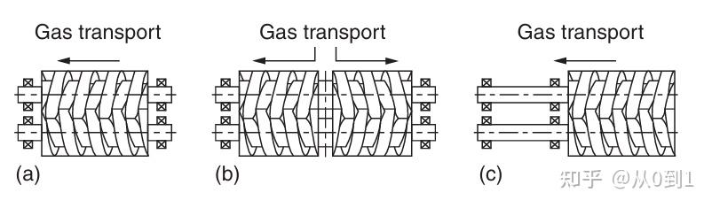 经典的罗茨转子扭曲成螺杆类似螺杆的形状。转子和泵体形成的腔体受转动的擢用将气体从吸气口搬运到排气口。